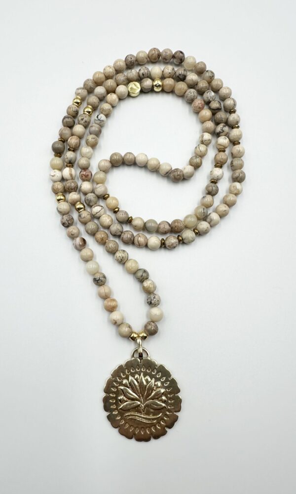 Diese Halskette in Kombination mit dem afrikanischen Opal und dem majestätischen Symbol der Lotusblüte macht diese Halskette zu einem außergewöhnlichen Schmuckstück. Sie verkörpert die Kraft und Schönheit der Natur und ist ein einzigartiger Ausdruck von Eleganz und Stil. Sie hat keinen Verschluss und eine Länge von ca. 50cm.
